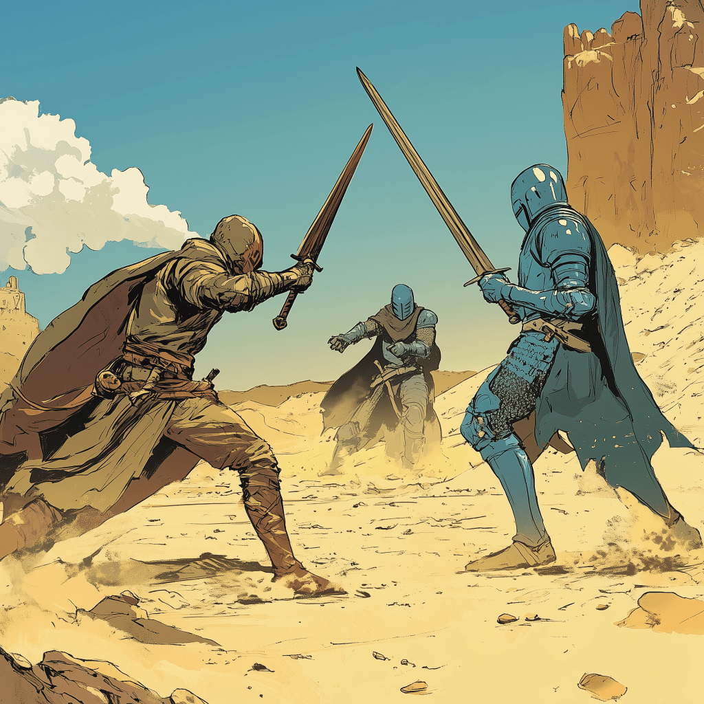 “Your swords… this land… I have made a terrible mistake,” the man in blue said, his voice breaking. He shivered at his realization.