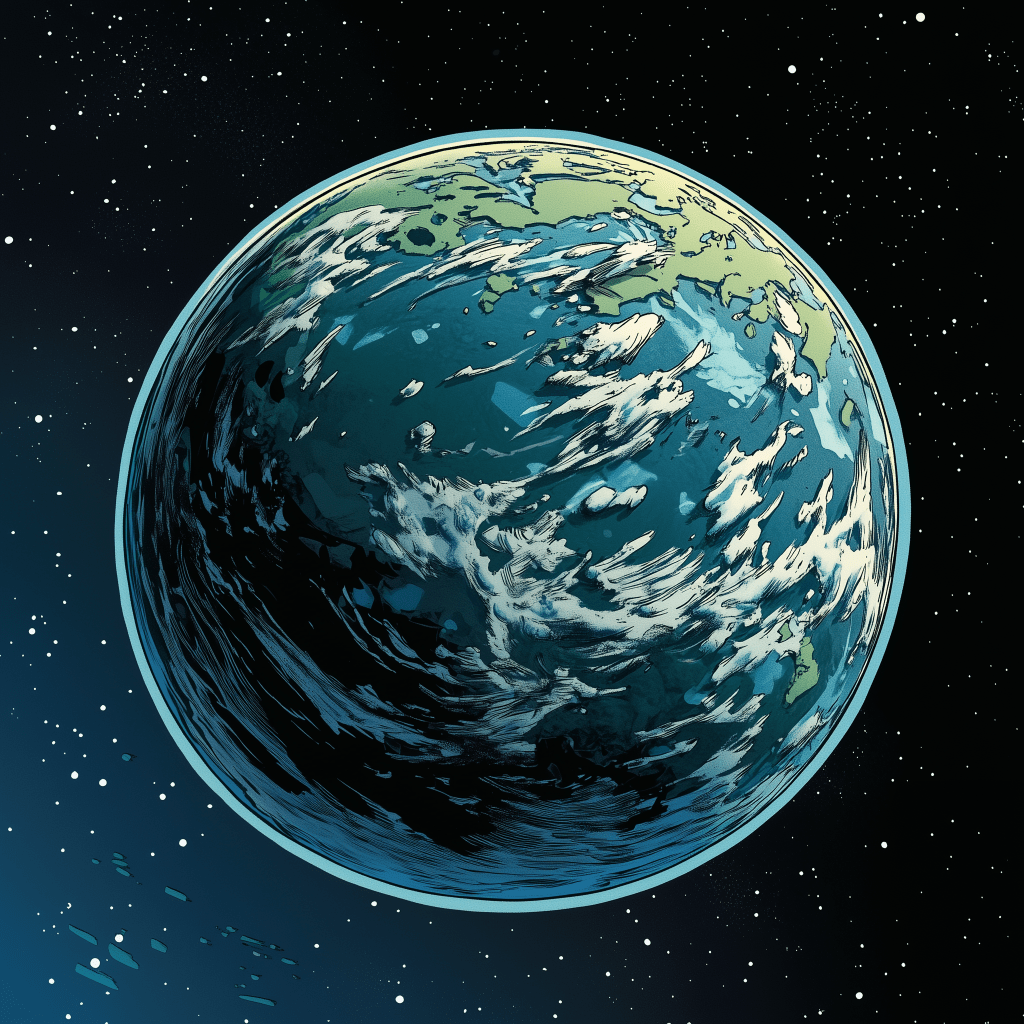 A water-dominated planet where the only ‘land’ is a series of shallow, submerged plateaus at the northern pole. These gently rippling shallows barely breach the surface, providing rare resting grounds amidst the endless, azure expanse.
