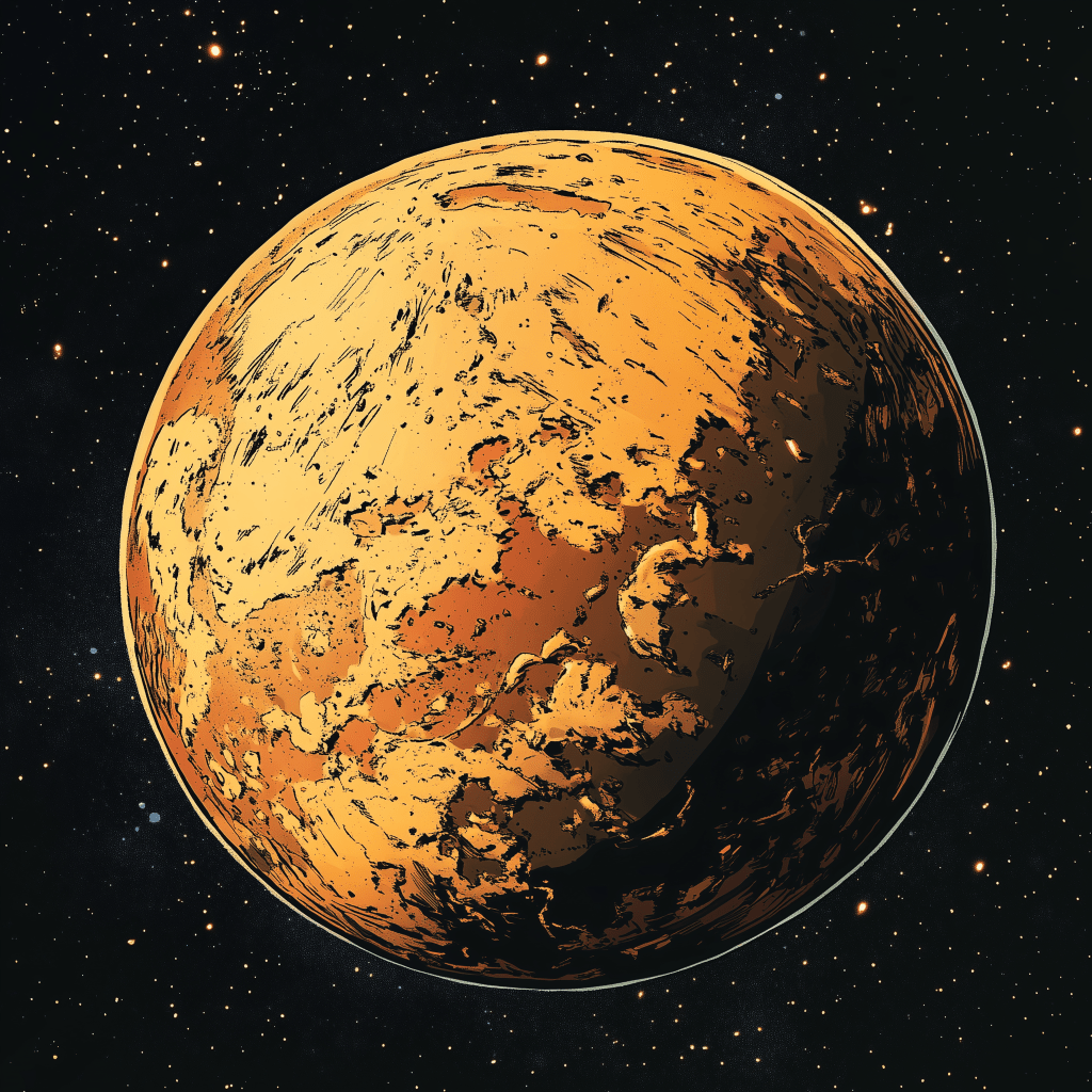A barren desert planet of endless sand dunes and jagged rock formations, scorched under an unrelenting sun. At its heart lies a single, sacred pool of water, mysteriously replenished once a year, serving as the planet’s lifeline for all who endure its harsh expanse.